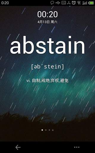 不解释,手机锁屏键你一天要按多少次?对于普遍拥有安卓综合症的同学来说,这是一个强迫记单词的好东西!有各种词库可供下载,适合各种水平的虫友哦! 4524132790.jpg[ Last edited by 吴天睿 on 2013-9-23 at 21:54 ] |