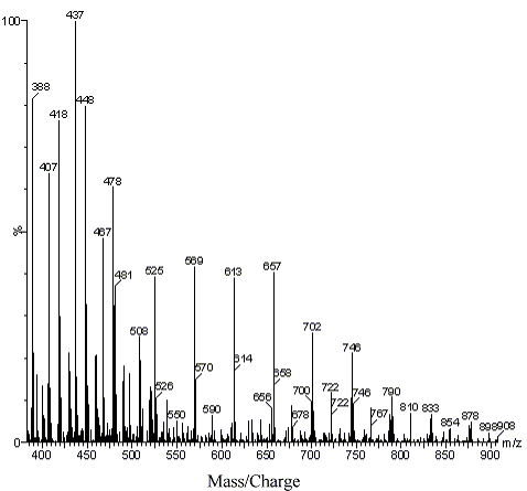 我最近用ESI-MS测样品时发现了以下问题: 样品A中有m/z为419.3,449.3,479.3等一系列峰,分子量间隔为三十,这些峰经过归属却低为目标物; 样品B中以上系列变为:418.3, 448.3,478.3等,统统比样品A中的分子量少1 .其实将图放大后可见419.3峰紧挨着418.3 (其他峰也一样),但前者较后者丰度低很多。为什么会出现分子量少一的峰?这些峰与419系列是同一物吗?我绞尽脑汁也无法归属。我个人认为他们是同一物,因为418系列的峰之间分子量总是差30,与419系列一样。还有,这两个样是反应合成的产物,A为50度下反应产物,B为80度下反应产物,其他条件不变。根据我对反应的理解,反应产物加Na离子的分子量应该都是奇数的,不会是偶数。我隔了离三天,重新合成一个样品去重复测定,结果都一样:A样品是正常的,B样品少一。操作质谱的老师坚持认为他们是不同的东西,但我认为应该是一样的,因为我们的反应物是确定的,没有分子量刚好小1的东西。排除仪器误差,同位素等因素,我实在无法理解这是怎么回事,望高手指点! 以前也有虫友提出类似问题,但我看没有圆满解释。 |