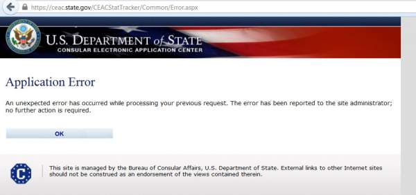 查询美国签证的网站出错误了。。。。。。。。。。。。