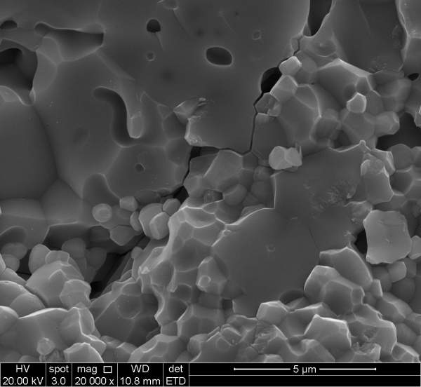 能不能看出是那种晶体类型,可以看出四方或立方晶型吗?这个是沿晶断裂吧,晶界比较明显...