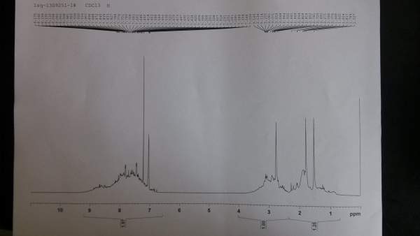 小弟是学煤化的,最近按老师要求将某种沥青拿去做了核磁氢谱,可我不会分析。特向论坛高手求助。样品是我合成的沥青,结构式写不出,请大神们给我分析分析:1.各个峰代表了哪种类型的H; 2.横坐标和顶部的数字代表什么; 3.哪个是溶剂(氯仿)的峰; 4.两张图略有区别说明了什么 IMG_20130926_150848.jpg IMG_20130926_151118.jpg |