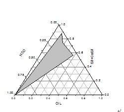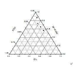 在做自微乳的时候遇到很多问题求助啊 首先说下我的具体做法吧,把混合乳化剂和油相按1:9到9:1以不同比例混合,然后以水滴定,最后的结果是只有6:4、7:3、8:2和9:1这四个比例可以形成微乳,利用origin软件作图,得到下面的这张图: 我的问题是:自微乳区域是不是从水的定点把这四个点连接起来的区域,也就是下面这张图的阴影部分: 捕获2.JPG 捕获1.JPG |