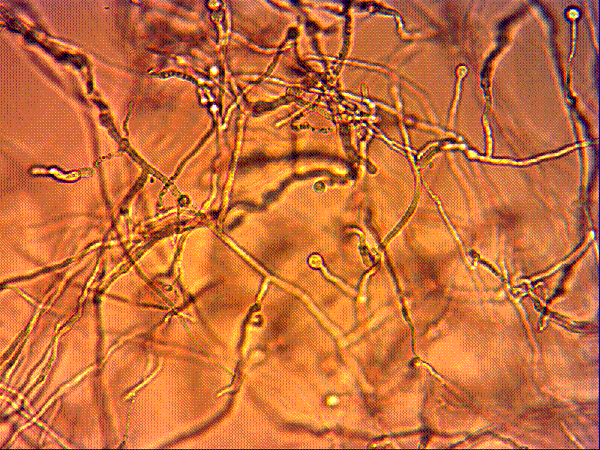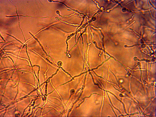 这是聚合物类阻垢剂配成溶液一段时间后里头形成的絮状物的显微镜照片,大家帮我看看可能是什么?