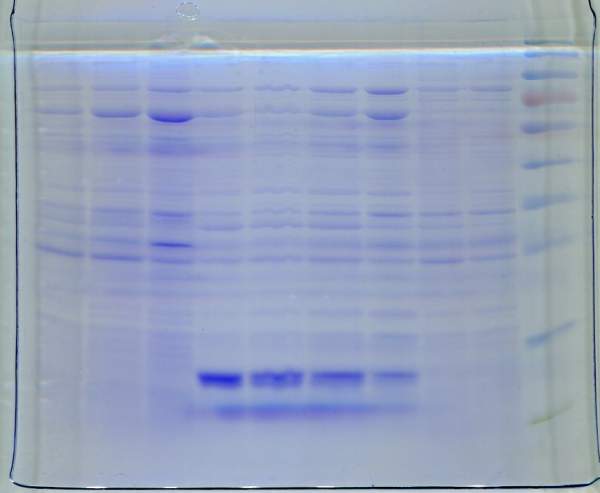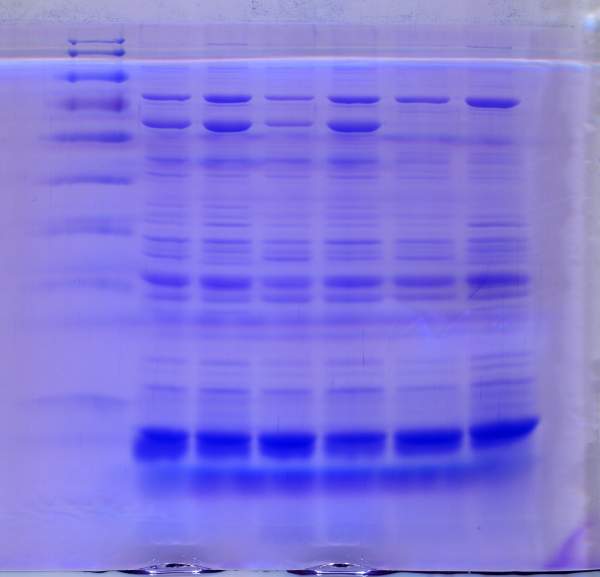 我在蛋白纯化时加了溶菌酶后最下方总会出现一排杂带,求高手解释,谢谢