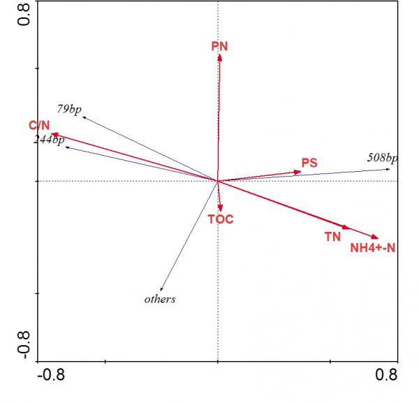我有一批数据需要做RDA分析,看环境因子对土壤微生物分布的影响,结果得到的是一个排序图,我想知道每一种微生物与环境因子之间的相关性到底有多大,请问这个想关性数据怎么得到呢? env and spe.png |