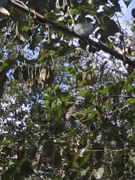 不是很清晰,乔木,现在结的果子是青色的,有点像桑葚果子