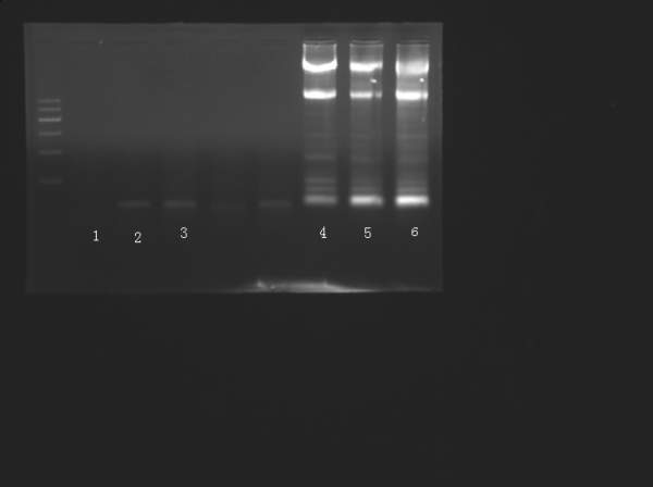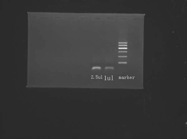 我做rt-PCR做很久了,每次RNA跑电泳,就是没有见到目的基因(205bp)的带,,只能看见内参GAPDH,还有二聚体(小于100bp见图),,,我也摸索过梯度温度,降低引物浓度(降低到一定浓度就什么都没有,或二聚体很弱),求助啊。。。。我的引物序列是:gccctgttttcttggtgtattc (5' to 3')