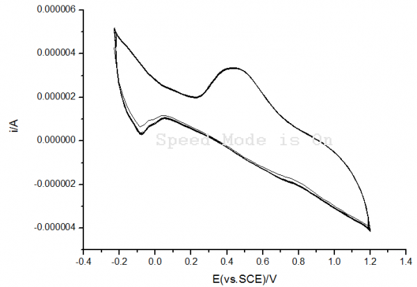请帮我看看这个循环伏安曲线吧!硫酸体系,铜阳极溶解,扫描会不会让氧化峰消失?