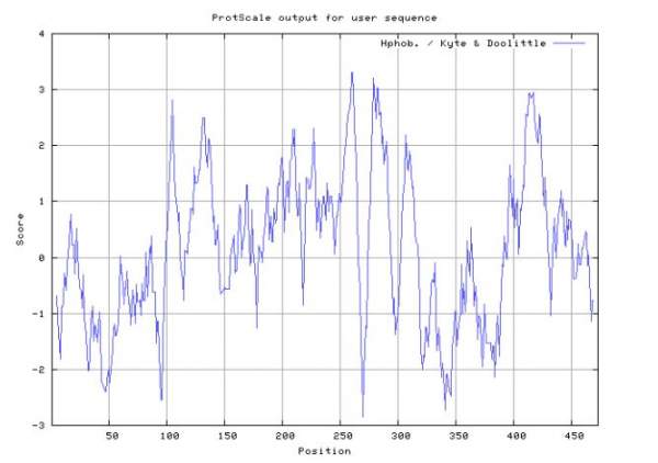 ProtScale的在线分析结果如图,怎么预测该蛋白的亲水/疏水性呢?