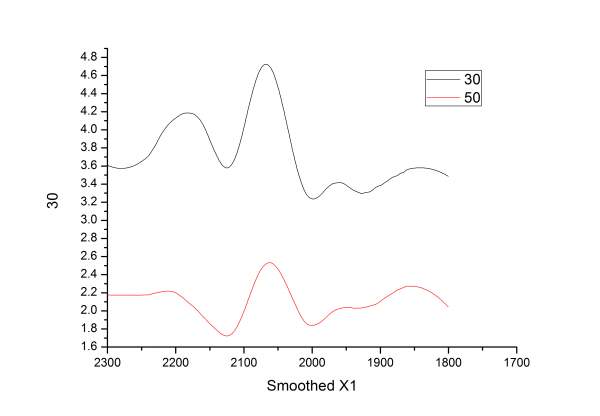做了一个CO吸附升温解吸的谱图,2000-2100是Pt吸附的C-O键。 30度的时候在2167有个峰,升温到50度的时候基本就消失了,不知道是什么。 查了一下可能是C-C三键或者是C-N三键,但是实验通入的是1%CO+99%N2气体做吸附,再通纯N2,用的是制备的Pt催化剂,没有负载。似乎这两个键都不应该存在啊? 希望大家能帮我一下~ Graph5.jpg |