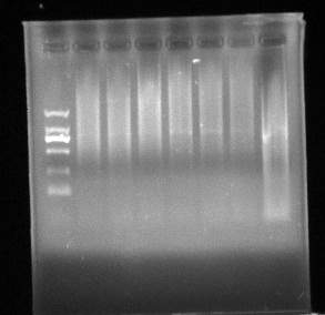 大家好, 我现在在做PCR ,设计了一对引物。刚开始的时候,结果很好,大小以及测序都是正确的。但是最近几次却出现跑胶弥散的现象,没有目的条带。我用的是cDNA作为模板,我用同样的模板、酶、buffer做内参基因以及其他的基因都很好,就是我现在的这一基因,我快急死了,请高手帮帮我!!! 上游引物:5' CCA AGA CTC TGT ATG GAG TG 3' 下游引物:5' GGT CAC TGG AAG ATA TGG C 3' mRNA序列: 1 tgtgctgtgt gtcagagtgg attggagttg aaaaagcttg actggcgtca ttcgggagct 61 ggatggcttg ggacatgtgc agccaagact ctgtatggag tgacatagag tgtgctgctc 121 tggttggtga ggaccagcct ctttgcccag atcttcctga acttgacctt tctgaacttg 181 atgtgaatga cttggataca gacagctttc tgggtggatt gaagtggtgt agcgaccaat 241 cggaaatcat atccaaccag tacaacaatg agcctgcgaa catatttgag aagatagatg 301 aagagaatga ggcaaacttg ctagcggtcc tcacagagac actggacagt ctccccgtgg 361 atgaagacgg attgccctca tttgatgcac tgacagatgg agccgtgacc actgacaacg 421 aggccagtcc ttcctccatg cctgacggca cccctccccc tcaggaggca gaagagccgt 481 ctctacttaa gaagctctta ctggcaccag ccaacactca gctcagctac aatgaatgca 541 gcggtcttag cactcagaac catgcagcaa accacaccca caggatcaga acaaaccctg 601 ccattgttaa gaccgagaat tcatggagca ataaagcgaa gagcatttgt caacagcaaa 661 agccacaaag acgtccctgc tcagagcttc tcaagtatct gaccacaaac gatgaccctc 721 ctcacaccaa acccacagaa aacaggaaca gcagcagaga caaatgtgct tccaaaaaga 781 agtcccatac acaaccgcag tcgcaacatg ctcaagccaa accaacaact ttatctcttc 841 ctctgacccc agagtcacca aatttgtttt tataaatgtg ccatatcttc cagtgacccc 901 aagggttccc catttgagaa caagactatt gagcgaacct taagtgtgga actctctgga 961 actgcaggcc taactcctcc cacaactcct cctcataaag ccaaccaaga taaccctttc 1021 aaggcttcgc caaagctgaa gccctcttgc aagaccgtgg tgccaccgcc aaccaagagg 1081 gcccggtaca gtgagtgttc tggtacccaa ggcagccact ccaccaagaa agggcccgag 1141 caatctgagt tgtacgcaca actcagcaag tcctcagggc tcagccgagg acacgaggaa 1201 aggaagacta aacggcccag tctccggctg tttggtgacc atgactactg tcagtcactc 1261 aattccaaaa cggatatact cattaacata tcacaggagc tccaagactc tagacaacta 1321 gacttcaaag atgcctcctg tgactggcag gggcacatct gttcttccac agattcaggc 1381 cagtgctacc tgagagagac tttggaggcc agcaagcagg tctctccttg cagcaccaga 1441 aaacagctcc aagaccagga aatccgagcg gagctgaaca agcacttcgg tcatccctgt 1501 caagctgtgt ttgacgacaa atcagacaag accagtgaac taagggatgg cgacttcagt 1561 aatgaacaat tctccaaact acctgtgttt ataaattcag gactagccat ggatggccta 1621 tttgatgaca gtgaagatga aagtgataaa ctgagctacc cttgggatgg cacgcagccc 1681 tattcattgt tcgatgtgtc gccttcttgc tcttccttta actctccgtg tcgagactca 1741 gtgtcaccac cgaaatcctt attttctcaa agaccccaaa ggatgcgctc tcgttcaaga 1801 tccttttctc gacacaggtc gtgttcccga tcaccatatt ccaggtcaag atcaaggtcc 1861 ccaggcagta gatcctcttc aagatcctgt tactactatg aatcaagcca ctacagacac 1921 cgcacacacc gcaattctcc cttgtatgtg agatcacgtt caaggtcacc ctacagccgt 1981 aggcccaggt acgacagcta tgaagcctat gagcacgaaa ggctcaagag ggatgaatac 2041 cgcaaagagc acgagaagcg ggagtctgaa agggccaaac agagagagag gcagaagcag 2101 aaagcaattg aagagcgccg tgtgatttac gttggtaaaa tcagacctga cacaacgcgg 2161 acagaattga gagaccgctt tgaagttttt ggtgaaattg aggaatgcac cgtaaatctg 2221 cgggatgatg gagacagcta tggtttcatc acctaccgtt acacctgtga cgctttcgct 2281 gctcttgaga atggatatac tttacgcagg tcgaacgaaa ctgacttcga gctgtacttt 2341 tgtggacgga agcaattttt caagtctaac tatgcagacc tagataccaa ctcagacgat 2401 tttgaccctg cttccaccaa gagcaagtat gactctctgg attttgatag tttactgaag 2461 gaagctcaga gaagcttgcg caggtaacgt gttcccaggc tgaggaatga cagagagatg 2521 gtcaatacct catgggacag cgtgtccttt cccaagactc ttgcaagtca tacttaggaa 2581 tttctcctac tttacactct ctgtacaaaa ataaaacaaa acaaaacaac aataacaaca 2641 acaacaacaa caataacaac aacaaccata ccagaacaag aacaa |