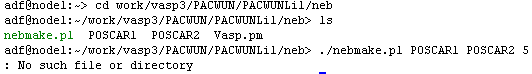 各位大侠,帮帮忙。我要用NEB求迁移势垒,初始态POSCAR都有了,也从这个网站(http://theory.cm.utexas.edu/vtsttools/scripts/)上下载了vtstscripts.tar.gz 的脚本。已经把nebmake.pl和Vasp.pm的脚本放在和两个POSCAR文件同意文件夹下了,怎么输入(./nebmake.pl POSCAR1 POSCAR2 5)的命令后,出现 : No such file or directory 的错误提示呢,有哪位好心的大侠帮帮忙啊,在此不甚感谢啊! 1.png |