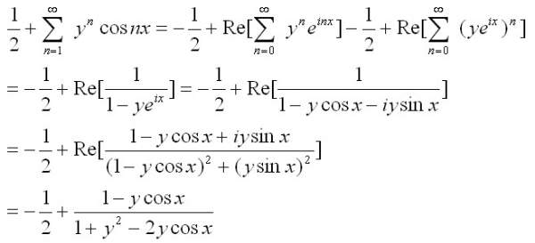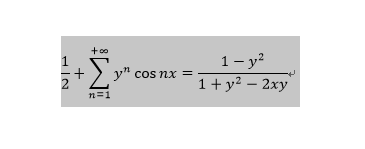 1/2+∑_(n=1)^(+∞)▒〖y^n cosnx 〗=(1-y^2)/(1+y^2-2xy)