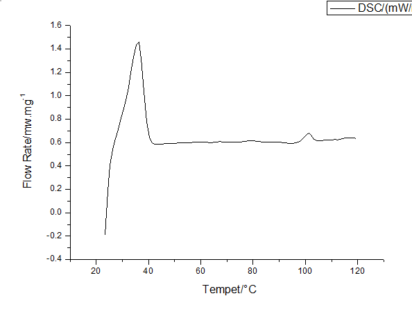 合成了一种超支化高分子,核是超支化聚乙烯亚胺,壳为棕榈酸,测了一下DSC,第一个问题:感觉这种物质应该不会结晶,但是在30多度出现熔融峰,是不是因为壳结晶的原因。 第二个问题:100度左右的峰不知道是什么,有两个猜测,第一种是样品中含有水,但是核磁没有显示有水的峰,第二个猜测是,在100度分解了,但觉得不太靠谱。 请各位大神帮忙分析一下,不胜感激 图片1.png |