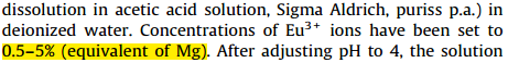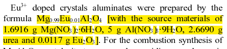 下面两段截取的文献是关于三价Eu掺杂MgAl2O4的,都是按mg的摩尔百分配比的,但是Eu是三价的,Mg是二价的,这样点和不平衡啊,上面也没说有加离子进行电荷补偿。并且文章最后分析道,Eu最可能是掺杂在Al的位置上的。这样合理吗?还有就是,三价铕能不能按Al的摩尔配比进行掺杂,这样电荷还是等价的。求懂这方面的给讲解一下。千恩万谢! 镁铝尖晶石.png 镁铝尖晶石2.png |