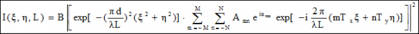 \lamda=1.55e-6;L=8e-6;M从-9到9,N从-9到9;Amn=1;Tx=Ty=20e-6;