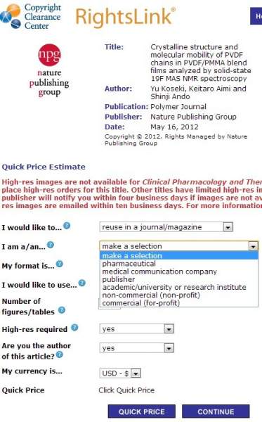 写综述时用到Polymer Journal上一边文章中的一个图片,在用Rightslink申请版权的时候,有一个地方不太清楚怎么选择。如图,"I am a/an..."下拉菜单中应该怎么选择?