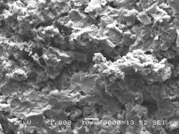 我所做的材料为多孔金属材料,图片为SEM下抗弯试样的断裂,求大家一起讨论!个人的观点是,1-2可能为准解理断裂,有撕裂和层片状结构,3为混合断裂,4为韧断,但材料韧性不太好.我分不太清楚准解理和混合断裂的区别,3中似乎也没有韧窝的出现,由于是多孔材料,难以判断到底是孔隙还是韧窝 1.jpg 2.jpg 3.jpg 4.jpg |