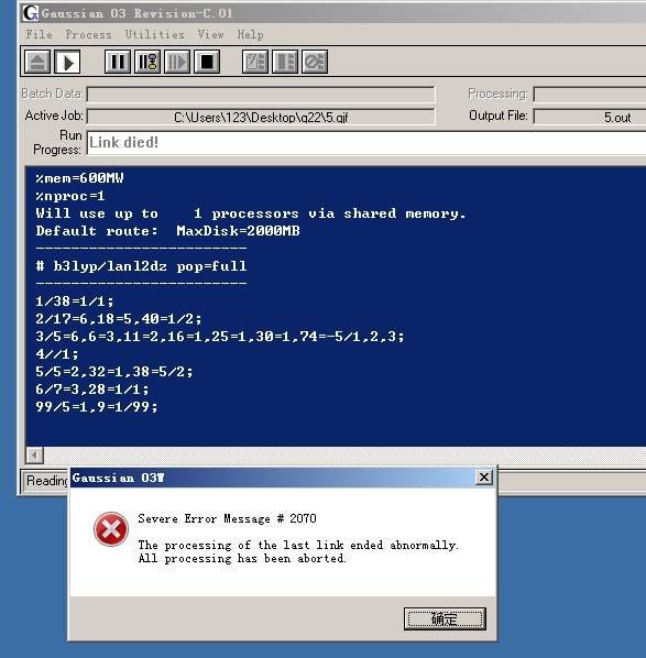 gaussian运算出错,贴出log和输入文件求高手给指点一下