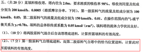 各位大神们,帮帮忙!!有关填料吸收塔的问题(2012河工大化工原理考研第五题)