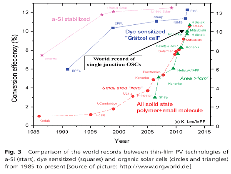 ¸½Í¼ÊǸ÷ÖÖ²ÄÁϵĹâµçת»»Ð§ÂÊ¡£ÎÞ»úÀà²ÄÁϵÄÓÅȱµã±È½ÏÇåÎú£¬Óлú·½ÃæÎÒ¾ÍÁèÂÒÁË¡£È¾ÁÏÃô»¯Ì«ÑôÄÜµç³ØºÍ¾ÛºÏÎïÌ«ÑôÄÜµç³ØÄØ£¬¸÷×ÔµÄÓÅȱµã¶öÊ²Ã´ÄØ£¿ ÎÞ±êÌâ.gif |