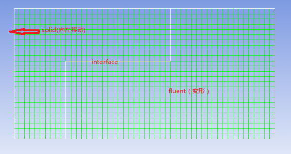 我做了一个动网格的小例子,如下图,左半部分为向左移动的solid,右半部分为fluent,分界面为interface。在solid向左移动的过程中,图中红圈处网格分割出现问题,应该如何解决呢?我想到一个办法,就是把右边的fluent按interface的延长线分成上下两层,但是有没有其他方法解决问题?