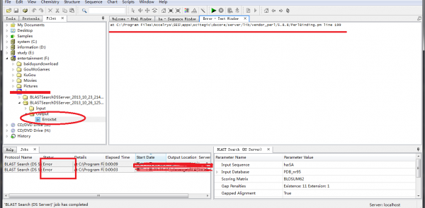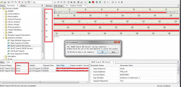 | 如题。在DS 2.5中打开fasta格式的蛋白序列,然后执行Protocol-Sequence Analysis-BLAST Search (DS Server),选择Input Database 为PDB_nr95,然后运行,可最后生成了一个Error.txt文件,其内容为:at C:\Program Files\Accelrys\SES\apps\scitegic\dscore/server/lib/vendor_perl/5.8.8/PerlBinding.pm line 199。不理解这个输出结果,请问这是怎么回事,有什么解决方法吗?请求得到解答,谢谢。 |