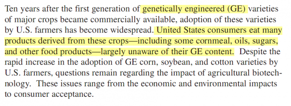 反转人士最基本的一个特征就是颠倒黑白,这一点在楼主身上可以看到。 美国人从1996年开始吃转基因食品,FDA不要求强制标注。美国农业部2006年发表的报告《美国转基因作物十年总结》,对此有明确的描述:http://www.ers.usda.gov/publicat ... 1.aspx#.UmnQSRZWu8V GE foods 1.PNG GE foods 2.PNG |