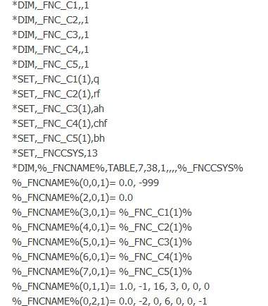 ANSYS 对函数定义所生成的表数组的内容没有做过介绍,曾有人想弄清楚,但不成功。 至于如何定义和使用函数功能,我的博客上正好刚发布的一篇博文中谈到这个问题,你也可以参考一下。博客地址: http://htbbzzg.blog.163.com |
