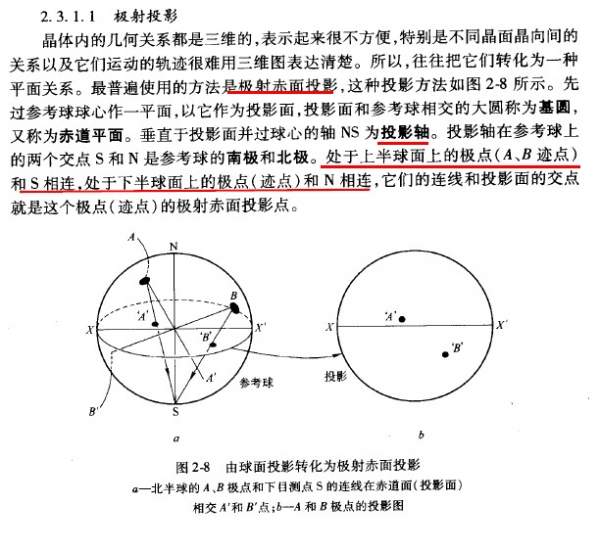 P32:极射赤面投影的定义和大部分材科基础的定义不同,有点费解啊,图片上传如下