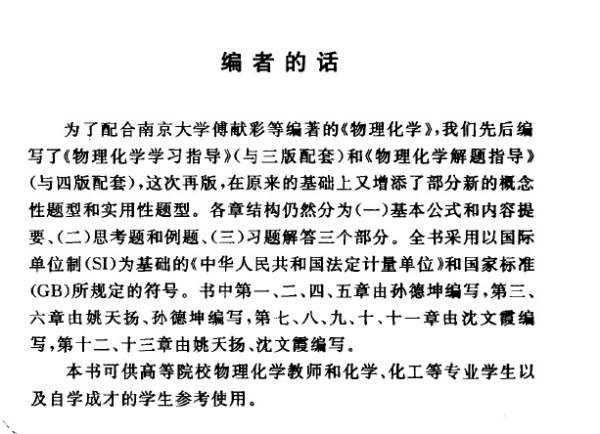 经典绝版书籍《物理化学解题指导》江苏教育出版社