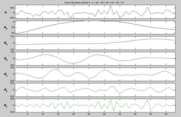 用db小波做分解,图形如何解释啊,a5就是最后的低频部分吗,是不是可以通过a5看数据的趋势?