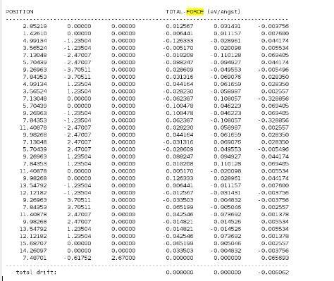 ÎÊÌâ1£ºÊ×ÏÈÉÏINCAR£¬EDIFFGÉèÖõÄÊÇ-5E-2£¬ÕÕÀí˵Õâ¸ö±ê×¼²»¸ß£¬µ«ÊÇÊÕÁ²¼«Âý£¬¼ÆËãÆðÀ´¶¼×ż±£¬²»ÖªµÀÕâ¸öINCARÓÐʲôÎÊÌâûÓУ¿ ÄãÖ¸µÄ"Âý" ÊÇÖ¸ "ÅÜÁ˺ܶàionic loops" ×†Î×îÖ±ÓXµÄ´ð°¸¾ÍÊÇ POSCAR "²»ºÃ" POSCAR ½oµÄ½Y˜‹²»ºÃÔì³É relaxation ß^³ÌÐèÒªÔS¶à¹¦·ò ÖÁì¶ INCAR µÄ†–î}~~²»ÉÙ ÎÒÓлØÐÅÔÚÄã„eµÄÌû ÎÊÌâ2£º²»ÖªµÀOUTCARµÄÕâ¸öTOTAL-FORCEÔõô¿´£¬Ç°ÈýÁÐÊÇÔ×Óxyz×ø±ê£¬ºóÈýÁÐÊÇÔ×ÓÔÚxyz·½ÏòÊܵÄÁ¦Â𣿠yes ÎÊÌâ3£ºÔËÐйý³ÌµÄ¶þÕŽØÍ¼£¬Ò»¸öÊÇ×ʼµÄ£¬Ò»¸öÊÇ×îºóµÄ£¬¿ÉÒÔ·¢ÏÖ´Ó1Fµ½27F£¬FµÄÊýÖµÒ»Ö±¶¼ÊÇ.296E+03£¬Õâ¸öÓ¦¸ÃÊÇÔ×ÓÊܵ½×î´óµÄÁ¦°É£¬´ÓÍ·µ½Î²Ò»Ö±¶¼ÊÇÕâ¸öÊýÖµ£¬Ò»Ö±µ½ÊÕÁ²½áÊø£¬²»ÖªµÀÔõô»ØÊ¡¡ NO, F ²»ÊÇÊÜÁ¦ F ÊÇÄÜÁ¿£¬ ͬһÐÐ E0 Ò²ÊÇÄÜÁ¿ F ÊÇ free energy, E0 ÊÇ total energy ƒÉÕßÖ®ég²îÒ»‚€ entropy |