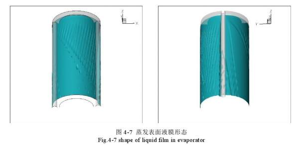 第2幅:这是模拟的一个在圆筒壁的降膜,液体在圆筒壁向下流动形成一层液膜,图示的也是液膜的形态。