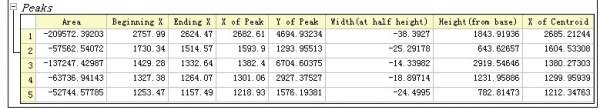 Origin 寻峰积分所得的表格求解释