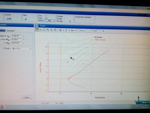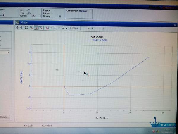 先前是用CHI660C测的阻抗图都是一个半圆后带斜线,但是这次换了EC-lab中PEIS测出来的阻抗图就都长这样,不知道是为什么,请大家帮忙分析一下,为什么第一个图和第二个图都出现负的电阻,并且向下弯曲。 2013-1.jpg 3.jpg 3.jpg |