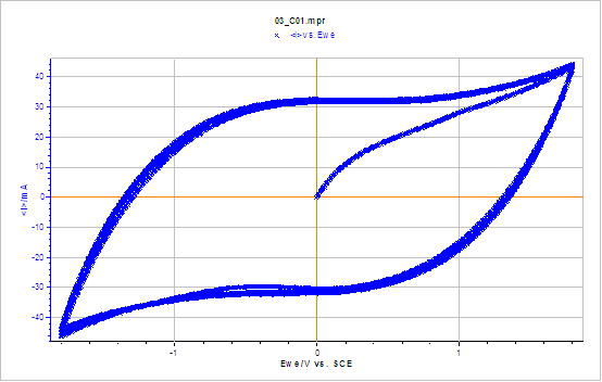 各位大神,本人最近刚刚开始学习电化学中的电吸附,自己尝试做了个小型电吸附模块,其中电极用的是活性炭+聚四氟乙烯+炭黑组成,分别做了两种规格的电极模块(3*1.5和6*6cm),用sp-150电化学工作站测循环伏安时,扫描电压和速度、溶液都一致,为什么出现两种不同的图(第一张为小电极3*1.5cm,第二张为6*6cm),小弟求解 http:// http:// |