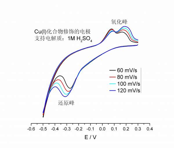 各位专家,最近我获得了一个Cu(I)化合物的CV图,非常迷惑,为什么随着扫速的增加第一个氧化峰峰电流逐渐减小,第二个氧化峰峰电流逐渐增加?附图如下,请各位发表高见。十分感谢!