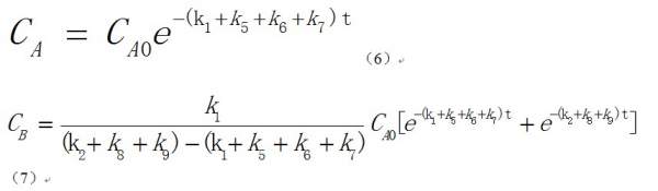 我是想把式(6),(7)带入到(3)中,然后积分,把Cc表示成t的函数。就和CA,CB的形式一样,不知道matlab能不能实现这种变换?