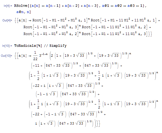 a1=a2=a3=1,a(n)=a(n-1)+a(n-2)+a(n-3),n>=4