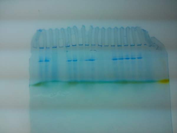 考马斯亮蓝法测蛋白质含量 染色不均匀 好像没有溶解似地 怎么回事啊?