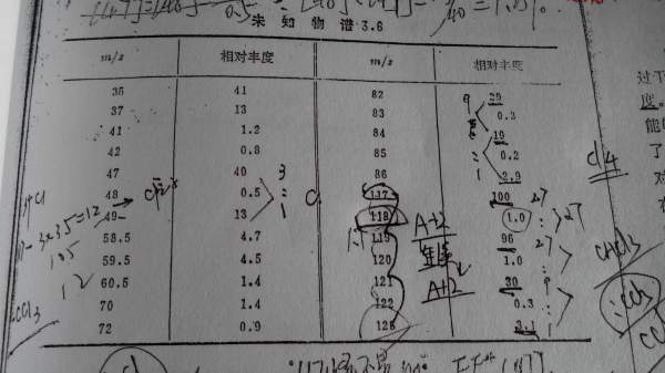 四氯化碳的分子离子峰是啥,有个题目答案是四氯化碳,但却没有m/z 152的峰,而m/z 117的相对丰度是100%,m/z 118的相对丰度是1.0%,怎么回事呢?这种物质是四氯化碳吗?还是氯仿?