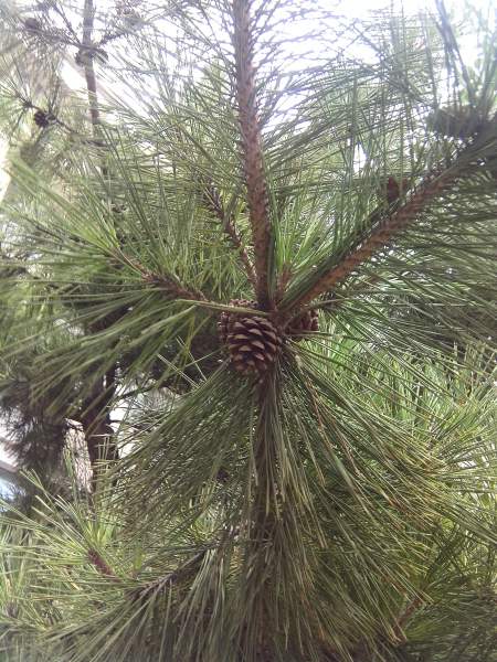 我有去看了下这颗松树,只是没有找到三针一束的啊。球果确实是聚生的。