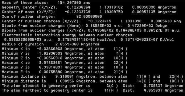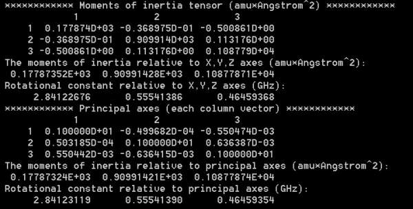 实在看不懂这个输出文件什么意思,不知道怎么求出偶极距与转动惯量夹角,不知道应该取那个量,能不能请你帮我分析一下呀?多谢了