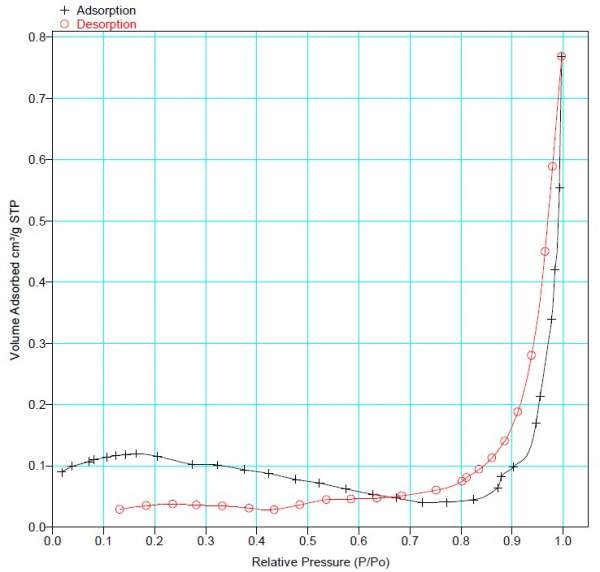 感觉吸附脱附曲线有些问题,煤焦比表面这么小吗,请大家帮忙指出应该是哪里出问题了?