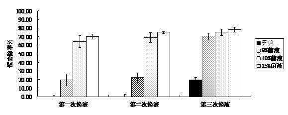 | 无菌的=sterile,非无菌的=non-sterile; 5%菌液=5% microbial innoculum;第一,二,三次换液= renew the solution for the first, second,third time;锰去除率%=demanganization percent;锰含量mg/Kg%干重=manganese content (mg/kg dry weight)。 |