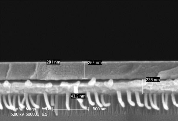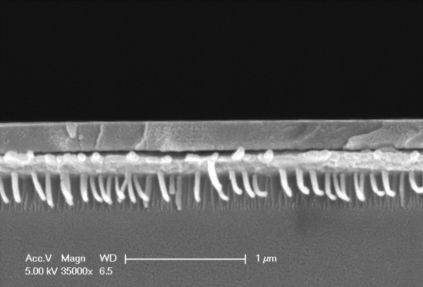 Pt/Ti/SiO2/Si substrate上长出了nanofiber