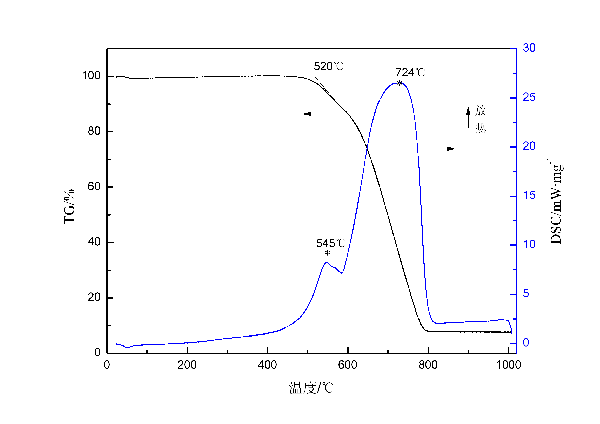 热重分析中DTA曲线的峰向下时放热吧,有的文献说是吸热。