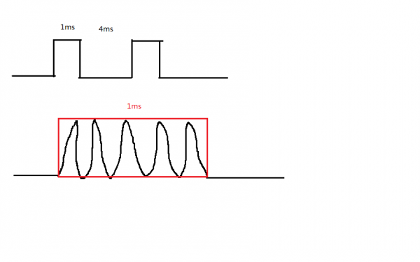 已知平均功率10 W,脉冲周期5ms,占空比为1:5,也就是说大脉冲的宽度为1 ms,重复频率为200 Hz,不理解可以看图。 如果说在这个1ms的脉冲尺度内有实际上是多个小脉冲,小脉冲有自己的重复频率,比如10kHz,那么怎么计算这个小脉冲的脉冲能量 无标题.png [ Last edited by cnsdwzw on 2013-11-12 at 18:21 ] |
