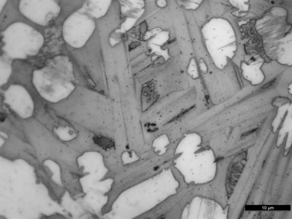 黑点是不是点蚀呀!我想你打个能谱就知道具体是神么了吧!打了的话,你知道白色和灰色的分别是什么物质吗??